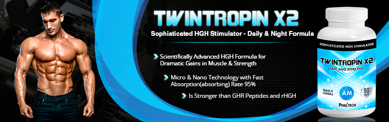 Twintropin X2 je sofistikovaný, silný a dlhodobo pôsobiace tabletový stimulant tvorby prirodzeného rastového hormónu (HGH) a silne anabolického hormónu IGF-1 v ľudskom tele. Efektivitou presahuje hodnoty injekčných GHR peptidov a syntetického rastového hormónu! Twintropin X2 je najnovšie inovatívne supplement nielen pre športovcov, vďaka jeho sofistikovanému zloženiu (denné a nočné formula) je produkcia HGH vo vašom tele stimulovaná neustále, dochádza k dlhodobému zvýšeniu úrovne IGF-1 v krvi o 50-80%! Twintropin je plnohodnotnou alternatívou injekčných GHR peptidov a rekombinantného (syntetického) rastového hormónu (rhGH), poteší tých čo sa chcú vyhnúť negatívnym účinkom syntetického rastového hormónu rhGH a je skvelý pre tých čo uprednostňujú tabletovú formu pred injkeční. Navyše veľmi dôležitým faktom je, že endogénna rastový hormón vyprodukovaný v tele na základe stimulácie užívaním Twintropinu je pre telo oveľa prirodzenejšie a mnohokrát bezpečnejšie, než každý podaný umelý rastový hormón. Keďže sa jedná o telu vlastné hormón, je niekoľkokrát lepšie telom prijatý, znášaný a tolerovaný. Poskytuje okamžitý efekt, už po 5 dňoch od užívania viditeľná zmena!